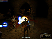 デモ機でしばらくプレイさせてもらったが,ノリとしては「DIE BY THE SWORD」や「Crusaders of Might and Magic」とよく似ている。比較対象としてはどちらも古いタイトルで申し訳ないが,筆者はどちらも結構好きな部類に入る。アクションRPGということで動きが気になる人もいると思うが,「こちら」にE3で入手したムービーをUpしてあるので,そっちを見てもらったほうが一目瞭然だろう。かなり軽快だ。 地上を歩く速度にしても,ストレスを感じない程度に速いのは好感触。また操作は一般的なFPSのそれに近く,W/A/S/Dで前/左/後/右,マウスで視点の変更,左クリックで攻撃,右クリックでガード,Shiftキーでアイテムを拾い,Spaceバーでジャンプといった感じ。ブースのスタッフに操作方法を聞かなくても直感的に遊べたのはいい感じだ。 武器の切り替えなどもワンキーでできるので,自分が放ったマジックミサイルを追いかけながら剣を抜き,敵を切り伏せるようなことも簡単にできる。とはいえ,戦闘が"アクションRPG"という割には大味なのは少々残念だ。またゲームの進行に関しては英語力はあまり必要はないようで,とくに選択肢が表示されたり,プレイヤーがなんらかのテキストを入力するような場面は見られなかった。ストーリーが分からなくてもOKというのであれば,英語が苦手な人でも楽しめるだろう。 それから今回注目したいのが,(おそらく)D.W.Bradleyの作品では初めての協力プレイが導入されたこと。これまでの発表では4人までと書かれていたが,E3で公開された最新情報では8人までと同時プレイ人数が増えている。こちらの様子も前述したムービーにちょっとだけ顔を出すので,ぜひともチェックしてもらいたい。 プレイキャラクターにはSTR,INT,DEXなどのお馴染みのパラメータは6種類あり,剣,魔法,弓を自由に使いこなすことができた。武器や防具の装備箇所は16か所。レベルアップすることでスキルを習得できるようだ。資料にもハイブリッドクラスと書かれているので,スキルなどの割り振りでキャラの個性を出していくものになるのだろう。 E3のバージョンではWeaponスキルが9種類,Defenseスキルが7種類,Generalスキルが3種類,Magicスキルが8種類,Thiefスキルが8種類,Diabolicスキルが6種類となっていたが,これはまだ確定数ではないようなので,今後増えることを期待したい。