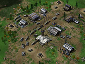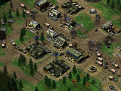 Axis&Alliesが第二次世界大戦モノのRTSであることは既に述べたが,まず本作の大きな特徴としては,TimeGates Studios社が現在開発中の「Kohan II:Kings of War」とまったく同じゲームエンジンが搭載されていることが挙げられる。 落ち着いた雰囲気のある美しいグラフィックス表現もさることながら,基本的なゲームシステムや対戦ロビーの仕様に至るまで,ゲームの根本部分の構造は,ほとんどKohan IIをベースにしているといってもよさそうな雰囲気。一つの小隊グループを一ユニットと見なす独特の戦闘システムや洗練された内政システムなど,詰まるところ,本作はKohanで確立したゲームシステムを応用した外伝的作品であると認識してよさそうに思える。 小隊システムとは,プレイヤーが管理する単位での1ユニットが,常に複数のユニットの混合で表現されているというゲームルール。ユニットの編成には複数のパターンが用意されており,その編成の比率を変化させることで,その小隊(ユニット)の能力が変化していく。例えば,斥候を混ぜると速度と視界が上昇したり,迫撃砲兵を入れると移動に支障が出てしまったりと,編成次第で同じ歩兵隊でも能力や用途がまったく違ってくるわけだ。 また本作では,ユニットの扱いや生産システムも非常に独特だ。ユニットは上記のように小隊として扱われるわけだが,生産した直後には,小隊長ただ一人しか存在せず,戦力として機能するには,生産後に自陣の一定周囲に存在する"補給エリア"に待機することで,兵士が揃う(準備が整う)のを待つ必要がある。補給エリアで待機していると,逐次兵士が補充されていき,一定時間経つと勢揃い,といった感じだ。 そしてこの小隊は,全滅さえしなければ補給エリアに退却することで,いくらでも無料で建直しが可能。生産直後の待機と同じ原理で,補給エリアでは逐次ユニットが補充されるのである。これによって,生産よりも戦力の移動と集中,攻撃する方向の駆け引きなどといった,戦術的な面白味が強調されているのだ。ユニットをたくさん作れば勝ち,という安易な図式に当てはまらない奥深さが,Kohanで確立されたシステムの面白さだといえる。 さらに戦闘面でいえば,士気や地形防御効果といった小難しい概念を,RTS風に上手くアレンジして導入している点も素晴らしいところ。筆者としては,開発元のスタッフに説明を受けながら,数年ぶりにKohanというゲームのシステムを再確認していった形となったが,今もなお,そのシステムには新鮮さを感じるくらいの凄みを感じてしまう。 まぁこのあたりはなかなか文字では説明仕切れないものがあるが,要は映像美や新要素などといった"表にでる凄さ"というよりは,地味に面白いルールを指す話。そのルールの無駄のなさというか,ゲーム的な面白さがしっかりとある点が凄いのである。ただ単に「隊形があります」「士気があります」と"言ってるだけ"のメーカー(ゲームとしての面白さまで昇華されていない)とは比較する必要さえ感じられない。