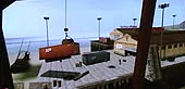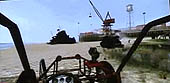 ●バギーであの埠頭へ デモの1分30秒頃から始まるバギーのシーンは,Part.1の第2シーンと同じ地域のようだが,前回もバギーを乗り捨てていたので前後関係はよく分からない。とにかく,嗅覚だけで反応するというアントライオンを轢き殺しながら,砂浜のようになった海岸地帯へと到達した。すでにコンバイン・アーミーとアントライオンも戦っており,プレイヤーは双方と対峙する三つ巴の戦いを強いられる。 アクションシーンはかなり長い。近くまで飛び跳ねてくるアントライオンはショットガンで,距離をあけて物陰から巧みに攻撃してくるコンバイン・アーミーにはマシンガンを使っている。ダイナマイト(?)をマニピュレータで投げつけて爆死させたり,RPG(ロケット砲)で遠方の敵を仕留めたりと大活躍だ。 死体から拾った武器を投げつけても木箱が破壊されないのは,「軽いものでは破壊できない」というのを見せているのだろうか? ともかく,RPGで撃たれたクレーンの上の敵は,爆風で(リアルな物理効果を謳っているにしては飛び過ぎじゃないかと思うくらいの勢いで)吹っ飛んでいた。 このクレーンのある埠頭にまでやってくると,海水が数十メートル分も引いているのに気づく。何かの天変地異だろうか? 干からびた砂浜には,取り残された船があるのも見える。「Northern Petrol」(北方石油)と書かれた看板のある別の埠頭に渡らなければならないようだが,あいにく橋は上げられており,ここではちょっとしたパズル的要素を楽しむことになる。 このシーンは,昨年のE3で公開されたプレイムービー「Docks」や「Coastline」とも同じ場所であると考えられる。