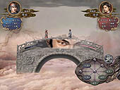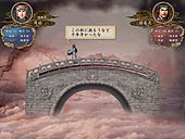 右の画像は,以前に掲載したものと同じ画像だが,まずはこれを使って簡単に画面の説明をしておこう。 左上の武将(ここでは周瑜)が,プレイヤーが担当している武将だ。顔グラフィックスの下に,能力値と「論客」「強弁家」「説客」「縦横家」の四つが表示されている。これは舌戦に関係する四つの"特技"(#3で詳しく解説する)で,持っている特技によって舌戦で使えるコマンドが変わってくるのだ。ここで説客がグレーアウトしているのは,周瑜がこの特技を身につけていないことを表している。画面右に表示されている相手武将(ここでは諸葛亮)は,四つの特技すべてをもつ強敵だと分かる。 担当武将の能力部分の下に縦に並んでいる,「道理6」「情義5」「反論」というのが,実際に舌戦で使用するコマンドだ。担当武将の能力/特技によって内容やコマンド数が変わる。 画面中央,二人の立っている橋に沿って描かれた青/赤の緩やかな曲線は,"心理バー"という。直感的に分かると思うが,画像の場面は諸葛亮が周瑜をかなり追い込めている状態を表している。プレイヤーは,各種コマンドやコンボ(後述)をうまく使い,担当武将側である"青"のバーを右端まで伸ばすことを目指すわけだ。逆に左端まで押し込まれると,負けとなる。 画面右下,三目並べの盤かビンゴゲームのカードに似た部分は,見たまんま,"盤"と呼ばれる。これはそのターンに使用したコマンドが表示される(表示されない場合もある。詳しくは後述する)もので,コンボの判定にも使われる。また右上の文字(ここでは「小」。「大」にもなる)は,そのターンのルールを示す。