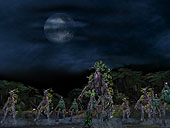 マップ制作は終わったが,テクスチャマッピングなどの作業が遅れているモリアは,プロデューサーのマーク・シャッグス(Mark Shaggs)氏にゴッドモードで特別にウォークスルーしてもらったマップだ。とにかく既存のRTSの形式を逸脱していて,9人のフェローシップを最後のクライマックスまで誘導していくという,アドベンチャーゲームのような感覚のゲームプレイだった。施設の設置などは行わず,かといってヒーローユニットにフォーメーションを組ませることもしない模様。ただただ,周囲を取り囲む大勢のゴブリンを,9人が倒していくことで映画さながらのシーンを演出したようで,シャッグス氏も「RTS要素が非常に少ないマップだけど,指輪物語のストーリー上で欠かせない場面だ」と話していた。
