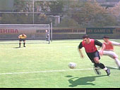 そこで彼らが新しく開発したのが「Fast Touch Control」と名付けられたもので,ゲームパッドを使用する場合は右のアナログパッドを使用する。左手で行うキャラクターの操作とは別に,右でボールの動きを決定しようという試みだ。このFirst Touch Controlは,キャラクターがボールをコントロールしているときに,プレイヤーの好きな方向にスティックをタップすることで,実にさまざまな動きを実現する。ドリブル中にボールを左右にフェイントさせて相手をかわしたり,トラッピングしたボールをそのまま後方にスルーさせるなど,ボールを受け取ってからの行動が実にスムースに行えるようになったのが驚きだ。