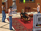 ■自作映画が作れる「ムービーメーカー」 プレイヤーはゲーム中の好きな場面を録画し,その後,編集を加えて映画(のような雰囲気のもの)を作ることが可能になる。この作成した映画は,avi形式のファイルとなっているので,自分のWebサイトにアップロードすることで,ほかの人が手軽に閲覧できるようになる。これまで,海外のシムファンには付属の画面キャプチャ機能でアルバムを作り,それを物語風にして公開するなどの遊びが受け入れられていたが,この「ムービーメーカー」機能を使った"Sims映画祭"を開催すれば,オンラインコミュニティ主導のイベントとなりそうだ。このムービーメーカーによって,シムシリーズの遊びの幅がさらに広がったといえるだろう。