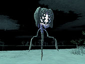 ・Weeper(ウィーパー) プロミヴォンをうろつく,生物の残滓(ざんし)の一種。「く」の字に折れ曲がった身体の前部には頭部らしきものがあるが,そこには目も鼻も口も耳もない。ただし何かを感じ取る力は残されているらしく,吸い寄せられるように生あるものに近づいては,鋭い鎌手で絶命させる。