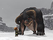 ・Buffalo(バッファロー) ウルガラン山脈に棲息する巨大な水牛。数百年前,オークが食用に持ち込んだ家畜が逃げ出し,野生化したものといわれている。原産地の寒冷な気候に適応しており,体温を逃さない分厚い皮下脂肪と凍土をも穿つ巨大な角を有している。凶暴だが,肉質は良好で臭みもなく美味。