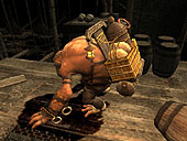 ■ムバルポロスのモブリン種 ・Bugbear(バグベア) 品種改良によって大型化された,作業・運搬・警備用のモブリン。腕・脚・心臓には生体改造が施されていて,途方もない怪力を出せる。言語能力は低く,単語を少々覚えられる程度だが,死体から追加移植された眼と脳によって,右手と左手でまったく異なる作業を器用にこなす。