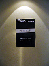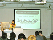 発表会のあとはタッチ&トライコーナーでMacintosh版ヘイローを楽しむプレイヤーの姿が見られ,結構な混雑ぶり。筆者もWindows版はプレイした経験があるが,プレイした感じでは違いがまったくないどころか,Macintoshのシネマディスプレイの全画面表示は大迫力。なかでも日本でも一台しかない30インチのシネマディスプレイを使った展示は,クラブイベントを目的に訪れた人さえも足を止めて見入っていた(しかしクラブイベントも兼ねているため,訪れる人々はFPS慣れしていないようで大苦戦)。