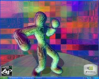 NVIDIAが,AMD64用のデモ「Blobby Dancer for AMD64」を公開した。内容は液体金属風のダンサーが踊りまくるというもの。液体表現はCPUによるところが大きいのだろうが,異方性反射,薄膜,トゥーンシェーディングなどShaderデモとしても楽しめるだろう。このデモはAMDの64ビットコードのパフォーマンスデモで,64ビットコードを使うことで,32ビットコードよりも27%以上高速化するという。 必須環境は, ・Windows XP 64-bit Edition for 64-bit Extended Systems ・メモリ512MB ・GeForce FX 5200以上のビデオカード ・ForceWare 61.74以上 となっている。 Athlon64やOpteronをお使いの方はぜひ試してみよう。……と,いうのもナンなので,追加情報。 とりあえず,ダウンロードファイル内には32ビットコードの実行ファイルも収録されている。こちらは通常のWindows XPと32ビットCPUでも実行可能だ。さらにいえば,先日公開されていたGeForce 6800用デモのうち,ClearSailingはGeForceFXでも実行可能だった。興味のある人は試してみるのもいいだろう。 (aueki)