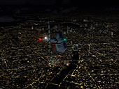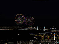これは,マイクロソフト フライトシミュレータ 2004/2002が標準で備える花火エフェクトを利用して,実在の花火大会と同じ日時,同じ地点に花火を表示するものだ。 東京は浅草の「隅田川花火大会」から,八条島の「納涼花火大会」や群馬県の「境町利根川花火大会」まで,関東平野で行われる76件の花火大会を,正確な座標でシーナリー上に再現する。また,大きな花火大会でよくある第二会場もきちんとカバーしている。