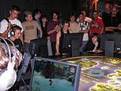 2004年春からβテストが続けられている「World of WarCraft」が,Game Convention会場で,6人までが遊べる状態で公開されていた。ファンイベント型のゲームショーではいつものことだが,World of WarCraftのあるVivendi Universal Games社のブースには黒山の人だかりができており,狭いブースが一層狭く歩きにくくなっている。30分ごとに区切られたプレイ時間では足りないようで,プレイ後に再びサインナップしようとして拒否されていたツワモノもいたほどだ。 6月にはPvPサーバーが設置されて,各キャラクターのバランスやプレイヤーキリング(PK)に対するルール作りが行われている。当初,アライアンスとホードの闘争では,プレイヤーキャラクターはもちろんトレイナーや商人などすべてのNPCキャラクターも殺害できるという意味不明のルールがテストされていた。しかしフライトマスターを殺すことで,リスポーンするまでは敵プレイヤーが別のゾーンに移動できないようにするなど予想通りの嫌がらせ行為が起こり……とまぁいろいろと調整が行われていて,現時点ではβテストがいつ終わるのかまったく分からない状態だ。 今回のデモは,オンラインなのかローカルなのかは不明だったが,6人のプレイヤーが対戦するのではなく,同時にクエストを進めていく形式になっていた。