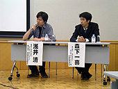 10分ほどの休憩の後,コラボの川口洋司氏をコーディネータに,「オンラインゲームパブリッシャーの現状と今後の戦略」という題目でパネルディスカッションが行われた。パネラーとして参加したのは,ガマニアデジタルエンターテインメントの浅井清氏と,ガンホー・オンライン・エンターテイメントの森下一喜氏の両名。マーケティング手法の話やパッケージビジネスについてどう思うかなど,既存のオフラインゲームとの差異についての議論が多く展開された。 ディスカッションは,日本のオンラインゲーム市場の現状把握からスタートし,まずは森下氏が「ラグナロクオンライン」の会員が約50万人,ガンホーIDの会員は63万9000人にまで増えていることを発表。ただその中で「着実に伸びてはいるが,ブレイクスルーというところまでは来ていない。会員の伸び率も減少傾向にある」と,市場の成長がまだまだ緩やかであることを伝えた。続く川口氏の「オンラインゲームは最近かなり増えているが,メーカー的には辛い現象ではないのか」という突っ込みに対しては,浅井氏,森下氏の両名とも「タイトルが増えてはいるが,パイを食い合いっているというほどではない。市場自体がまだまだ成長過程だ」と回答。その中で森下氏は,「競争よりも,各社と協力して市場を大きくすることが先決」という考えを述べた。
