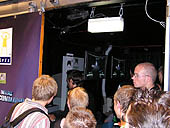 コンテナを改造したような狭い部屋でのデモなので,多くのファンが押し寄せてギュウギュウ詰めになる中,誰もが汗をかきながらもゲームに酔いしれていた。
