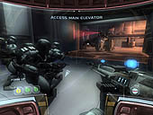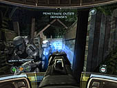 インタフェースは,どことなく「メトロイド プライム」を思わせる作りで,味方のヘルスやアンモ残量を見やすく表示している。