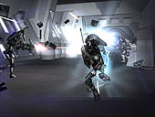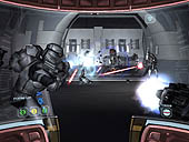 ゲームエンジンは,「Unreal Tournament 2003」のものがライセンスされていたはずだが,画面を見る限りでは,その後の最新版の登場によってアップグレードされていると思われる。デモでのバトルドロイドとの戦い,ドアの破壊,飛行型ジオノシアン人との応戦など,かなりのハイペースで進行していくのが痛快だった。