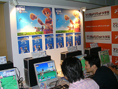 会場には,コミカルアクションの「ゲットアンプド」と,簡単操作のオンラインゴルフゲーム「スカッとゴルフ パンヤ」が展示されていた。パンヤは今年のWCGの"特別種目"にも選ばれており,同日に行われたパンヤのオンライン予選大会への飛び込み参加イベントも催された