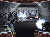 次に,「こちら」の記事で2005年2月に英語版が発売される予定と紹介した「スター・ウォーズ リパブリック コマンド」だが,今冬に完全日本語版を発売する前提で出展されるという。 PC向けとXbox向けに開発され,"ストームトルーパー"のコマンド部隊の一員として3人のNPC隊員とともにチーム戦闘を行うFPSであり,マルチプレイヤーモードも用意される。会場での展示は「英語版か日本語版かは未定だがプレイアブル」とのことなので要注目だ。