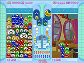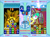 ぷよぷよシリーズは,上から落ちてくる"ぷよ"を操作して遊ぶ落ちものパズルゲーム。空間の一定列が天辺までぷよで埋まってしまうと負けとなり,ほとんどの場合相手がぷよ消すことで発生する"邪魔ぷよ"の使い方/タイミングで勝負が決まる。またぷよは同じ色を四つ合わせると消滅,相手に邪魔ぷよを送るが,この動作を連続で連鎖させると邪魔ぷよの数が増量。最大数十連鎖まで発射した日には,相手の空間は一瞬にして邪魔ぷよで埋め尽くされてしまうほど。"連鎖"を行う過程と発射するタイミングこそが,勝負に重要なポイントだ。