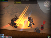 もちろんマルチプレイが最高に面白いことは,今回も変わらない。マルチプレイの同時参加人数が最大32人になってしまったのは残念ではあるが,さまざまな施設を抱えたお互いの基地を巡る攻防,多機能戦車や大型航空機などの各種兵器,そして"ディスク"を始めとする独特な武器と,ジェットパックを駆使したハイスピードでスポーティな戦闘。トライブスの興奮は,やはりマルチプレイにあると再確認させられる。なお,サイバーフロントで国内向けに専用サーバーを立てる予定があるかどうか確認してみたが,今のところ未定とのこと。まあ,まだそこまで期待するには早いか。