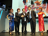 JC EntertainmentのCEOであるYoung Shin Kim氏(写真左から二人め)と,中国のT2 Technologies Holdings社プレジデント兼CEO,Jim Wang氏(左から4人め)