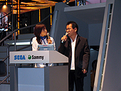 計70億円という莫大な制作費でも話題となった,コンシューマ用超大作RPG「シェンムー」。そのMMOアクションRPG版がリリースされるという発表こそずいぶん前にあったが(関連記事は「こちら」),中国及び韓国で発表会が行われただけで,シェンムーの故郷である日本では,まったく詳しい情報が出てこなかった。しかし本日(9月24日),東京ゲームショウ 2004のセガ・サミーブースで,エグゼクティブ・プロデューサーである鈴木裕氏自ら壇上に立ち,本作の発表を行った。