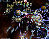 また戦術部分といえば,本作にはユニットに「向き」の概念があり,正面よりも横,横よりも後ろの防御力が低く設定されている。つまり正面から打ち合うだけではなく,横に回り込んだりして攻撃を仕掛けるといった戦い方が非常に重要。同じ兵力でも,戦い方次第で有利にも不利にもなる要素が色濃いのは,面白い試みだといえるだろう。 とはいえ,この向きの概念と,それに関連する艦隊フォーメーションのシステムについては,若干の練り込み不足というか,昇華しきれていない印象が拭えない。例えば,向きが非常に大切な概念の割には,向きを変更する操作方法がこなれていなかったり,フォーメーションの扱いについても,ちょっと大雑把だというのが正直なところ。 フォーメーションの扱いでいえば,最近では「Rise of Nations」,昔では「Kohan:Immortal Sovereigns」などが非常に良くできていたし,向きを変える操作方法にしても,「Myth」や「Shogun:Total War」といった戦術級のRTSなどが良いサンプルになってくれるかもしれない。向きによってダメージが変化するというルール自体は非常に面白いだけに,それをスムースに遊べるようにするシステムも,今後のブラッシュアップでの課題となるだろう。