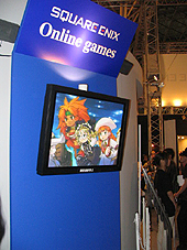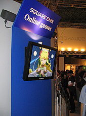 一台のモニターで,「クロスゲート パワーアップキット3 天界の騎士と星詠の歌姫」と交互にムービーが流れていたスクウェア・エニックスのMMO。ゲームの詳細まではまだ不明だが,アクション性を全面に打ち出したMMOであるらしい。スクエニ曰く「MMORPGの楽しさ」「アクションゲームの爽快感」「リアルタイムストラテジーの奥深さ」の三つを兼ね備えたゲームになるとのことで,2005年発売予定。詳細な発表が待たれている。 発表当時の「こちら」のNews以上の情報はまだどこにもないと思われるので,気になる人は一読を。公式サイト(「こちら」)のムービーコーナーでは,東京ゲームショウ2004で展示されていたものと同じムービーが見られるようになっている。