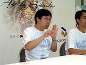 (左)リネージュII プログラムチーム長。3か国語をスラスラと使う,開発における超重要人物。世界のどこでも,たいがいのメディアに一人で対応できる,二物を与えられた人。ずるい。