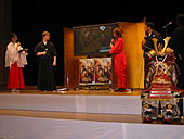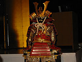 ステージには甲冑が置かれ,本作の特徴を視覚的に分かりやすく表現していた