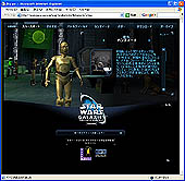 まぁとにかく一度訪れてほしいのだが,実に手の込んだ作りである。「Flash」を多用した,というと"重い"と嫌がる人もいるかもしれないが,その分,非常に見応えのあるサイトになっているのは事実。お馴染みのテーマソングも流れるなど,映画「スター・ウォーズ」好きなら,感動すること間違いなしだ。 ただ見た目が豪華なだけでなく,コンテンツも充実している。現在用意されているメニューは,"スペースポート" "アカデミー" "バトルフィールド" "カンティーナ" "バザー" "ダウンロード" "アーカイブ"の七つで,さらにそれぞれ,平均して三つずつのサブメニューが用意されている。例えばスペースポート内には"惑星" "都市" "乗り物"のサブメニューがあり,その中の惑星ならお馴染みの「タトゥイーン」など五つの星が紹介されているのだ。またダウンロードのメニューには,スクリーンショットやムービー,壁紙と一緒に,AIM(AOL Instant Messenger)用のアイコンデータまで用意されているといった凝りようである。