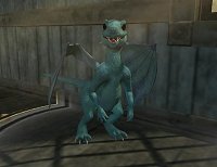 ようやく届いたエバークエストIIのコレクションエディション……という個人的なニュースはさておき,コレクションエディションで話題のモノといったらやはりベビードラゴンに尽きるだろう。コレクターエディションのボーナスアイテムで,自分の家の中にドラゴンが飼えるのだ。昨日の夜から始めて,ようやく初心者島を出るレベルになり,あれこれ紆余曲折を経て(ベルがまさか二つあるとは。β未プレイだったので途方に暮れていた),ようやくQeynosに上陸し,念願のマイルームを持つことができた。