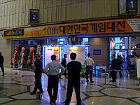 両巨頭ともいえるNC Soft社もNEXON社も,それぞれ「Guild Wars」や「Mabinogi」(マビノギ)を出展させるべき時期だが,やはりWoWとの正面対決を避けたと考えられる。もっとも,KAMEXの主催者側のトップがGravity社のKim, Jumg Ryul会長であるため,これまでの大手メーカー達もKAMEXで割を食ってきたという経緯があり,それが理由だろうという声も多い。 「Hangame」(ハンゲーム)を運営するNHN社は出展しているものの,これまでに約10億円ものコストをかけて鋭意開発中のMMORPG「Arch Lord」は展示なし。「あなたはゴルフ王」(「こちら」参照)のみを超巨大ブースで大々的に宣伝していた。