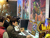 全出展メーカーの中で,Gravity社,NHN社,CCR社など,オンラインゲーム会社は約10社。ゲーム科学高校や各大学のゲーム学科など教育機関系が六つ,そのほかはモバイル系とアーケードゲームメーカーが大部分を占めているので,正直にいって,"オンラインゲーム大国"と呼ばれている韓国で開催されたゲームショウだと考えると,恥ずかしいほどの状況だ。日本のゲームショウに家庭用ゲーム機が出展されていないような状況,とでもいえばよいだろうか。 これほどまでにオンラインゲーム会社の出展が少ないのは,韓国オンラインゲーム業界全般の不況のため,マーケティング資金が不足しているというのが最大の理由だが,"怪物"WoWを避けたメーカーも多かったのではないだろうか。 あるMMORPG開発会社の関係者は,「WoWが出展されれば,そちらに観客が流れるのは明らか。うちの作品とWoWを比較されるだけでまったく得にならないと判断したので,出展を諦めた」と語っていたほどだ。