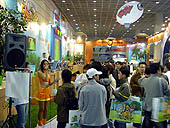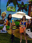 上段左:「あなたはゴルフ王」ブースの入り口 上段中央:「あなたはゴルフ王」をプレイできる試遊台 上段右:珍しく外国人女性モデルまで起用して積極的に広報中だ 下段左:超巨大なスペースを確保しているNHN社のブース 下段中央:WoWブースの弓術イベント 下段右:RF Onlineの中央ブース