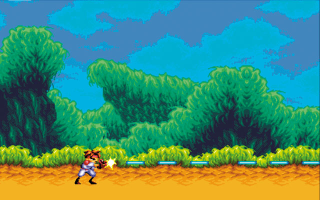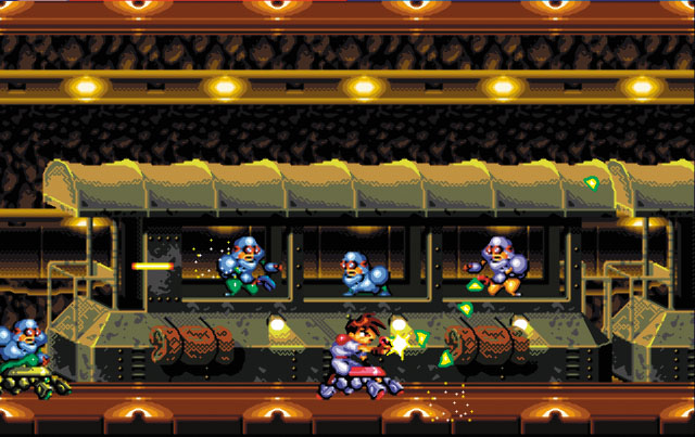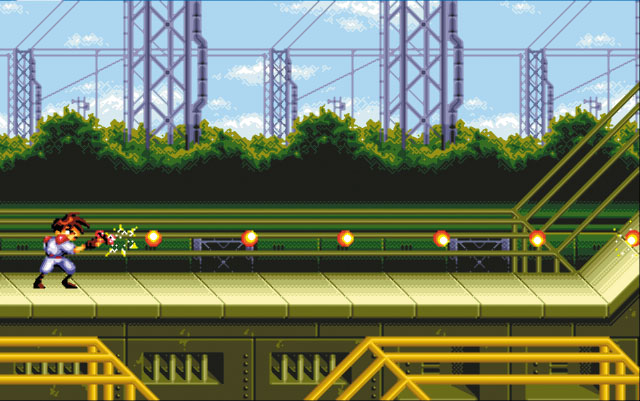 ■ガンスターヒーローズ 4種類の武器(フォース,ライトニング,ファイヤー,チェイサー)を駆使して各ステージを突破していくアクションシューティング。古代遺跡や飛行船といった個性的なステージが多数登場し,奥にはボスモンスターが待ち構える。武器も組み合わせられるのが特徴で,例えばフォースとライトニングだと"レーザー100"という特殊武器になる。