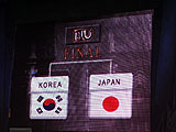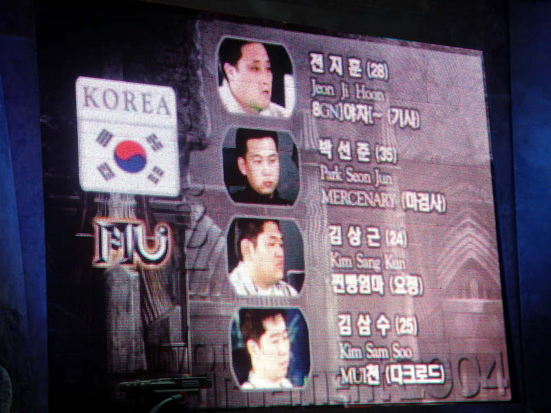 ■決勝トーナメント■ 決勝トーナメントで日本(A組1位)対フィリピン(B組2位),韓国(B組1位)対中国(A組2位)の競技が始まると,「観客の間に決勝戦は日韓戦が見たい!」という雰囲気が広がり始め,中継席もこの雰囲気を察したらしく,日韓戦の可能性を強調したトークで盛り上げていた。 試合結果は,日本対フィリピンは前半戦が100対21で日本が勝利,後半戦も100対12と圧倒的な強さで日本は決勝戦へコマを進めた。一方,韓国対中国は前半戦は100対9と韓国が圧勝したが,後半戦は中国が防衛ラインの見直しを図ったため,韓国は苦しむことに……。とはいえ,さすがMU Onlineのお膝元である韓国は,苦戦しながらも100対84で勝利をものにし,決勝戦へと進出した。