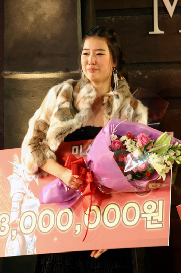 ■そのほか■ Mu World Tournamentは,WEBZEN社が韓国内のプレイヤーへのサービスと,まだプレイしたことがない人への広報を目的にしたイベントである。すでに韓国,中国,台湾,日本,タイ,フィリピンの6地域の代表が火花を散らした試合の様子はお伝えしたので,ここではそれ以外の内容についてお伝えしていこう。 World Tournamentの後には,あらかじめ選出された38のギルドが対戦を行い,迫力のバトルを演出していた。飛び交う魔法などを中心に,派手なエフェクトが画面中に広がり,通りがかった人も思わず足を止めて見ていた様子。最終的に生き残った19のギルドは,20051月に本サーバーに導入される攻城戦のシステムと同時に各サーバーの城主ギルドとして登録されることになる。また攻城戦のムービーなども会場に流されていて,こちらもギルド同士の戦いと同様に迫力満点のものとなっていた。 基本的に戦闘要素を中心としたパブリシティが多かったが,毎年参加者たちに高い人気を誇る,宝石のラッシュイベントや,Miss Mu選抜大会なども開催された。とくに後者のMiss Mu選抜大会は,ちょっとした人気を集めており,オンライン予選を勝ち抜いた14人の美女たちの自己アピールや,Mu Onlineのテストを行った結果,高校1年生であるKang, Min Juさんが優勝となった。