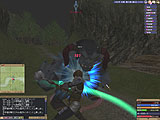 ベルアイルは3D描画を採用していて,戦闘のシステムも一般的なMMORPGとそれほど大きな差異はない。フィールドに徘徊しているモンスターを攻撃するというスタイルだが,ファイナルファンタジーXIやエバークエストIIで採用されているモンスターの占有システムはないようだ。つまり,だれでも1匹のモンスターに対して攻撃を加えられ,またモンスターを倒したときの採取スキル(皮や肉などは,スキル使用で入手する)も自由に行使できるというわけだ。