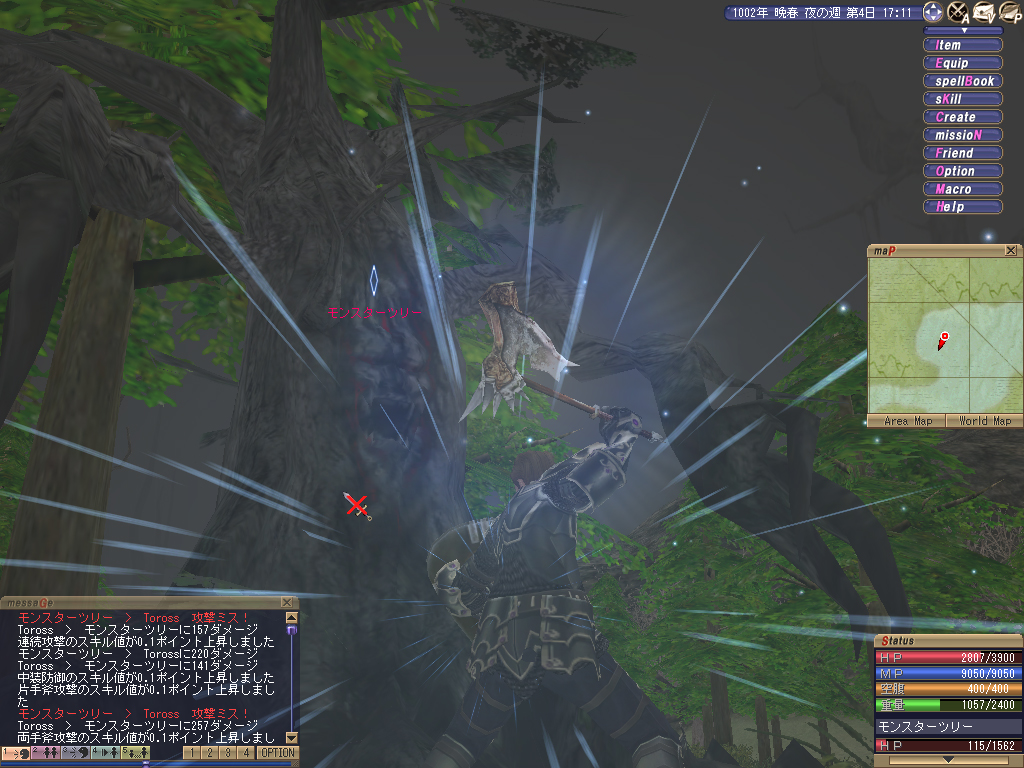 攻撃には,オートアタックとマニュアルアタックの2種類のモードがあり,オートアタックはその名のとおり攻撃を始めればモンスターが倒れるまで自動的に攻撃をし続けるというもの。一方のマニュアルアタックは,攻撃可能となっているときにクリックで攻撃するというものだ。連続攻撃や溜め攻撃は,マニュアルアタックモードでなければ行えなくなっている。