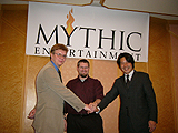 左から,Mythic EntertainmentのMatt Firor氏,Eugene Evans氏,ビー・ビー・サーブ国枝信吾