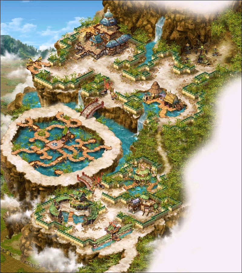 2月24日に実装される予定の新しい町は,東洋風の造りとなっていて,例えば建物の屋根は竹で作られており,さらにしゃちほこのような飾りが付いていたりする。またそれこそ中国のような,水に恵まれ竹に囲まれた立地環境となっている。