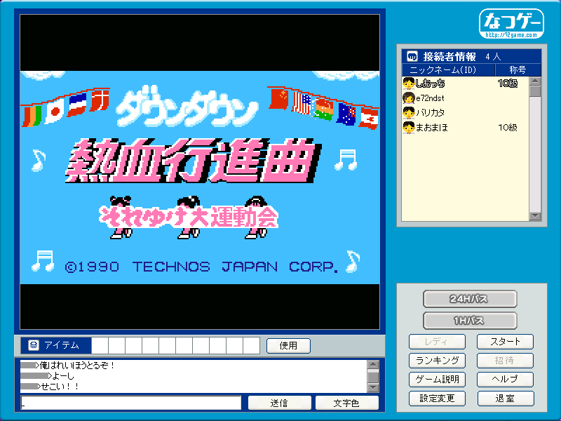 NTTコミュニケーションズは本日(1月27日),同社が運営するレトロゲーム配信サービス「なつゲー」で,現在βテスト中のアクションゲーム「ダウンタウン熱血行進曲 それゆけ大運動会」β版(以下,それゆけ大運動会)を4人対戦に対応した。