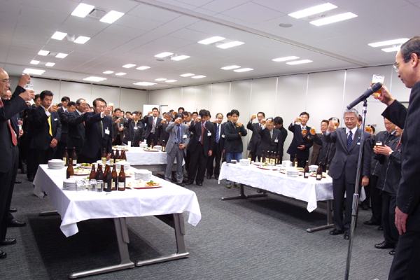 その後は,ようやく開所式らしい,立食パーティが行われた。ここでは同社代表取締役CEOキム ヨンマン氏(用意した紙を読みながらとはいえ,すべて日本語で話していた)をはじめとして,さまざまな関係会社のお偉方の話が続いたのだが,……まぁ当然ながらゲーム内容に関する話は皆無だったので,4Gamer的にはこれも省略。その代わりというわけではないが,立食パーティ中に,食事もそこそこに(というか何も口にせずに),何人かめぼしい(?)人に話を聞いてきたので,それはのちほど[インタビュー編]として掲載しよう。お楽しみに。(Iwahama / Photo by kiki)