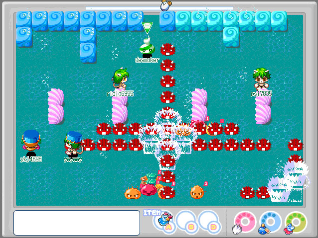 「モンスターくるくる」は,ハドソンの「ボンバーマンオンライン」やネクソンジャパンの「ビー・エヌ・ビー」と同タイプのオンラインアクションゲーム。最大8人での対戦が可能で,キャラクターは手持ちの"くる"(爆弾)を設置して,ステージ上に置かれたブロックを壊しながら他プレイヤーと戦う。くるは設置すると一定時間経過後に爆発するが,時間の経過と共に"危険度"が増していき,危険モードとなると,爆発までは時間があるにも関わらずキャラクターが触れると爆発するという。ちなみに危険モードになったときは,爆発時に「3.2.1」というカウントダウンがくるの上に表示される。なお,くるにはいろいろな種類が存在し,種類によって爆発のタイミングや速度が違うようだ。 ブロックを壊すことで出現するフィールドアイテムには,キャラクターのパワー,くる数,スピードをそれぞれ上昇させるものと,爆風を一回防御できるシールドの計4種類が存在する。アイテムを多く集めるほど対戦上有利になるのはこの手のゲームでは基本ともいえることなので,効率のいいブロックの壊し方が重要となるだろう(もちろん運にも左右されるが)。 また,ゲーム内通貨の"キャロット"(ちなみにくるもキャロットで購入する)で購入できる特殊なアイテムも用意されている。キャロットは,ゲーム中にブロックから出現するキャロット金貨,銀貨,銅貨を拾った状態で勝利するとポイントとして加算され,アイテムショップでのアイテム購入時に使用できる。購入できるアイテムには,くるを2個同時に発射できる"くる兄弟"や,キャラクターが透明になる"透明マント"などが用意されているようだ。