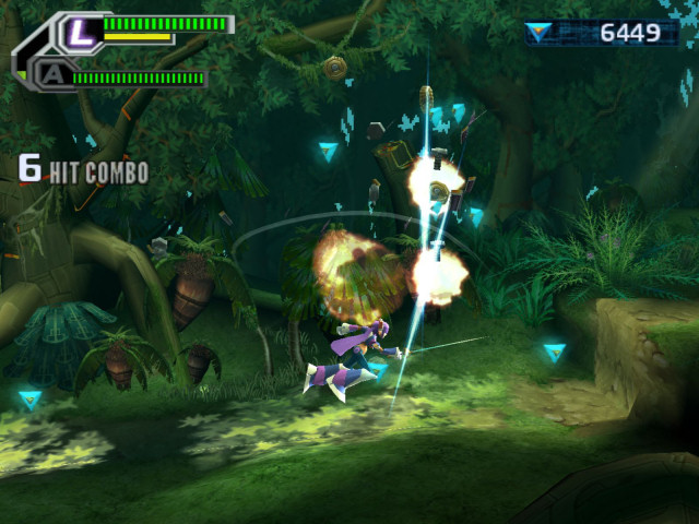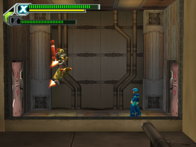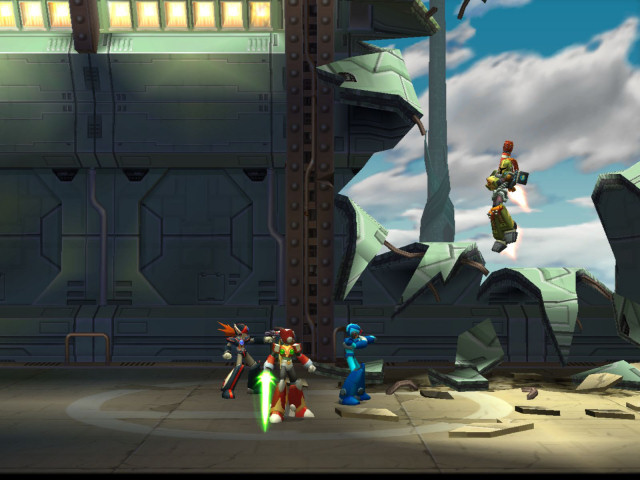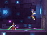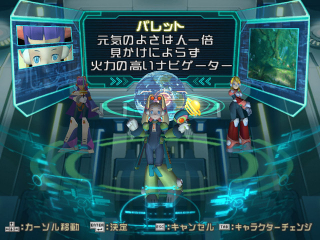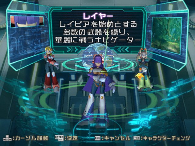 そして今回,新たな要素も明らかになった。 本作では,ステージ攻略やボス攻略のヒントをくれる"ナビゲーター"が3人(エイリア,パレット,レイヤー)用意されているのだが,ある特定の条件を満たすと(詳細は不明)この3人をプレイヤーキャラとして使用できるというものだ。 スクリーンショットを見る限りでは,彼女らの攻撃方法はそれぞれ,エックス,アクセル,ゼロに似ているように思えるが,実際のところは不明だ。 また,エックスなどを使用するときと同様,ナビゲーターも3人のうちの2人を選択してステージ攻略に挑戦することになるようだ。