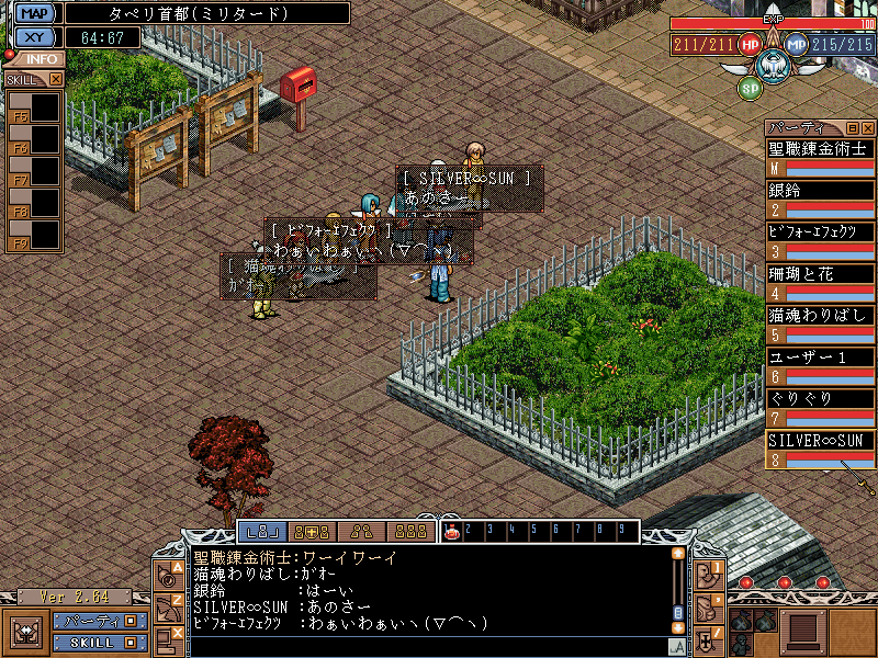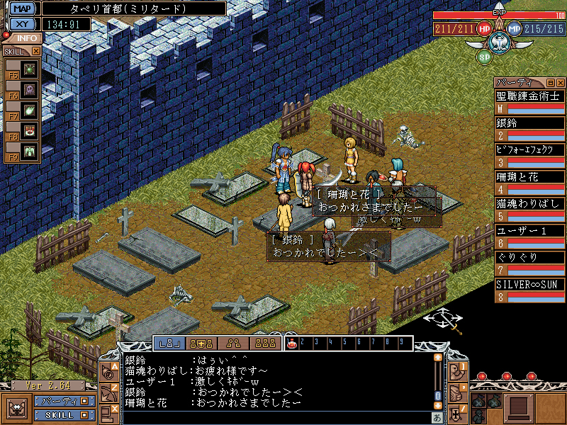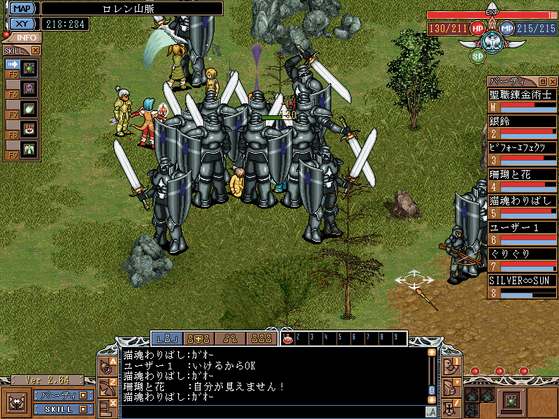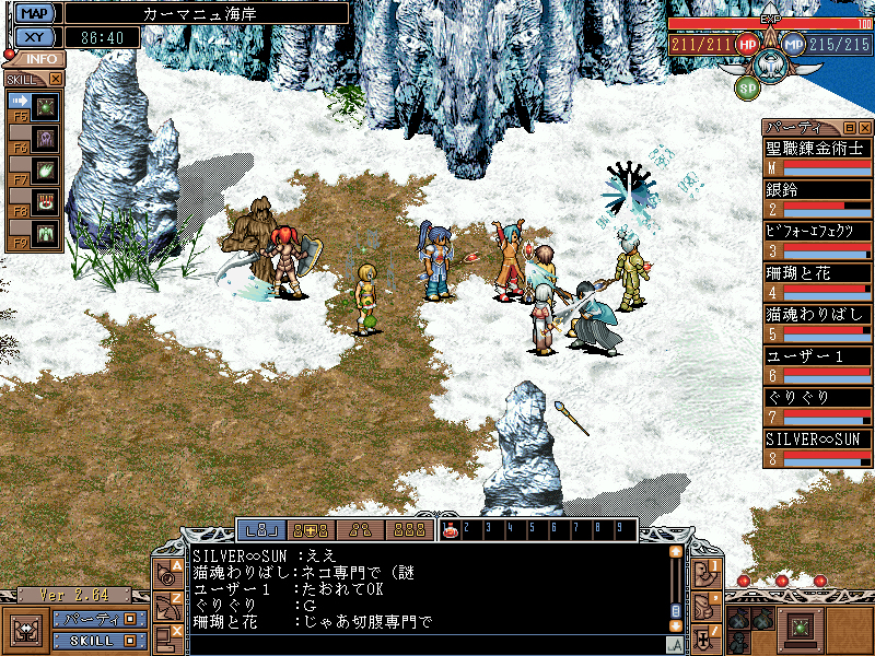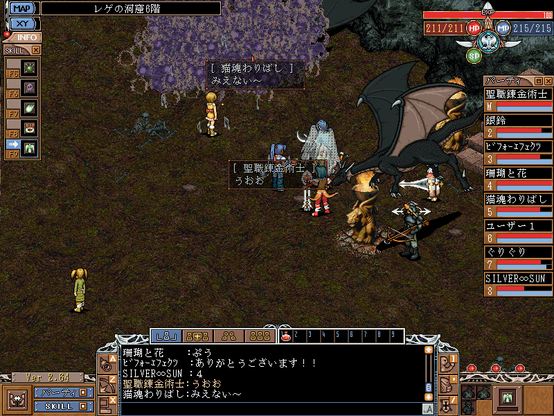 本日のアップデートで最も大きな機能追加は,パーティシステムの実装だ。1組につき最大8人までのパーティを組むことで,モンスターを倒したときに得られる経験値の分配,パーティメンバーのHPやMPといった情報の共有,パーティ専用チャットなどが行えるようになる。基本的には多くのMMORPGのパーティシステムと大きな違いはないようだ(というより,今までなかったのか……)。