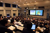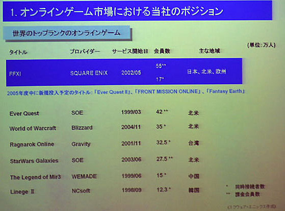 この日のAOGCは,第1セッション,スクウェア・エニックス代表取締役社長,和田洋一氏の基調講演で幕を開けた。 氏は冒頭で「こういった場で企業の戦略を明かすことはないが,オンラインゲーム産業の抱える問題は,社会全体の問題。弊社の戦略と合わせて,脇道にそれながら考えを述べるので,興味をもっていただければ」と前置きをしつつ,Network in the Game(コミュニケーションは,ゲームの新たな楽しさ),Everything plays Games(いつでもどこでもゲームが楽しめる)という同社のスローガンを題材に,話を聞かせてくれた。