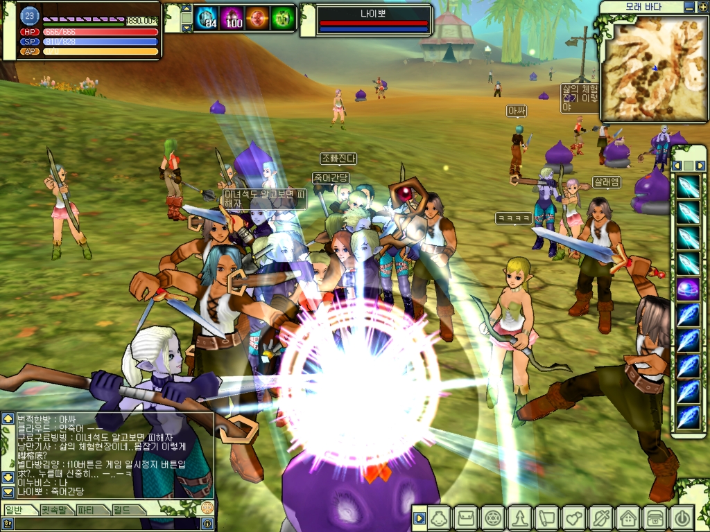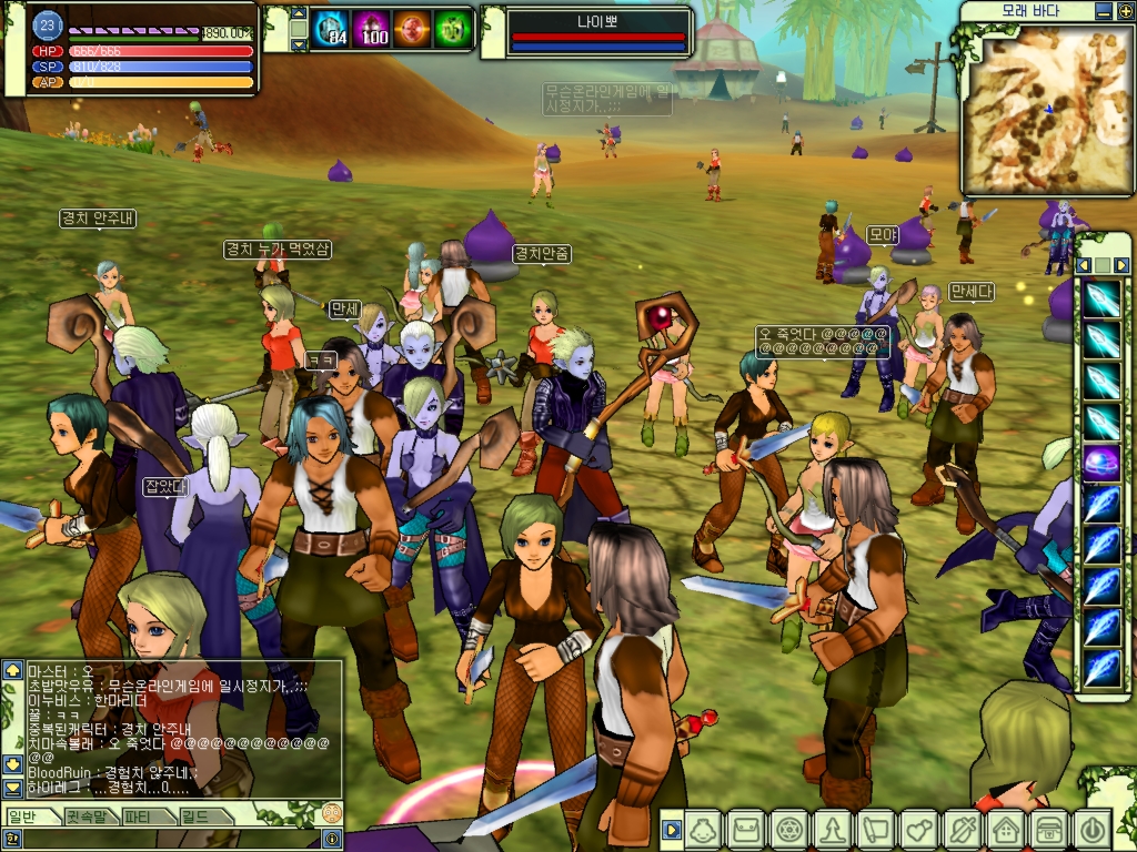 今回行われているβテストは,"太陽サーバー"で男女合わせて全8種類のメインキャラクターと,80種類以上のアイテム,ゲームのスタート地点であるルーメン村とその周辺,"カラシアンテンプルダンジョン"など全6種類のフィールド,そして20種類以上のモンスターが公開されている。この条件で,サーバーの安定性を中心に,ゲーム内でのアイテム売買,各職業別の戦闘やスキルといった,ゲームの中核となる部分が重点的にテストされているようだ。 このゲームでは,ゲーム上のあちこちに"シャイナー"と呼ばれるGMが配置されているのが特徴なのだが,彼らはテスター達にプレイ方法,マップガイド,モンスター,アイテムなどの情報を伝えると同時に,テスターの意見を積極的に聞いているという。従来のMMORPGの多くがNPCにプレイヤーのナビゲートを任せっきりにしているのに対し,直接的な対人サービスが採用されていることは,テスター達に好評なようだ。