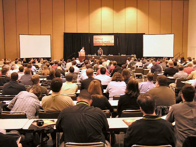 この日,筆者が最初に参加したのは「Serious Game Summit」というトラックの基調講演,ラフ・コスター(Raph Koster)氏による「A Theory of Fun for Games」(ゲームのための楽しさ理論)である。コスター氏は,MUD制作を経て「Ultima Online」のゲームデザイナーの一人として名を上げ,現在はSony Online Entertainment社のCCO(Chief Creative Officer)として「Star Wars Galaxies」(邦題 スター・ウォーズ ギャラクシーズ)の開発チームを率いている。 この講義は,最近発売されたばかりのコスター氏の著書「A Theory of Fun for Game Design」で語られた「何がゲームを面白くするのか」という命題を,シリアスゲームに当てはめて検証していくものだ。 ちなみにシリアスゲームとは,ただ銃でモンスターを撃ち殺したり,車で市街地を走り回ったりといったエンターテインメント性のみを重視したものではなく,社会福祉,教育,政治といった素材を扱ったソフトのことをいう。 コスター氏は,「シリアスゲームも,楽しくなければ意味がない」と述べ,糖尿病と闘っている7歳の娘に,コスター氏自身が個人プロジェクトとしてゲームを制作したという個人的な経験を語った。そのゲームは,サーペント(大蛇)が海を泳ぎながら餌を確保していくのを,血糖値のマネージメントになぞらえているような内容らしい。コスター氏は,シリアスゲームの形をとっていても,プレイヤーが楽しみながら学べるソフトがあっても良い,と考えているようだ。