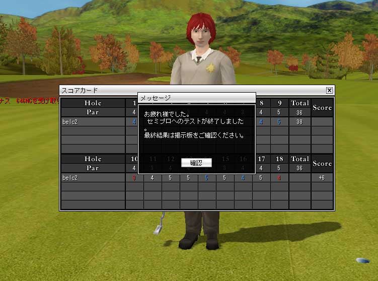 セミプロテストに合格すると,キャラクターの称号が"セミプロ"になるのはもちろんのこと,"飛距離"や"正確値"などのステータスポイントがアップするセミプロ専用クラブが使え,さらに「アルプハイプ」以外の全コースで,"アマチュア"キャラより多くの経験値が獲得できるようになる。ただし,ボギーなどで成績が振るわなかった場合には,逆に経験値が減少するというリスクも伴う。