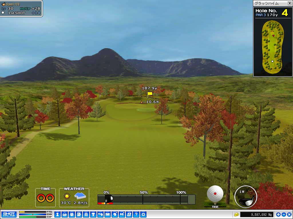 テストの実施会場は「グラッツハイム」。ワールド南東にいるスクール教員「トール」(Thor)に話しかけて登録すれば参加できる。ただし,参加資格として"レベルが41以上" "ハンディキャップが−1以下"という2条件を満たしている必要があるほか,参加費25万NG(ゲーム内通貨)がかかる。 合否は全18ホールのスコアで判定され,基準となるスコアは−4,すなわち68打以下でラウンドする必要があるわけだが,参加者の半数以上が基準を上回った場合,上回った人のうち上位100名のみが合格となる。なお,このとき100番目のスコアに同点者がいた場合,同点者も含めて合格と判定される。 テストに挑戦できるのは該当期間に1回だけであり,たとえラウンドの途中で諦めた場合でも,次の(つまり2週間後の)テスト期間になるまで挑戦できない点は注意が必要だ。そのほか,詳しいテスト規則については,公式サイトの「こちら」も参照してほしい。